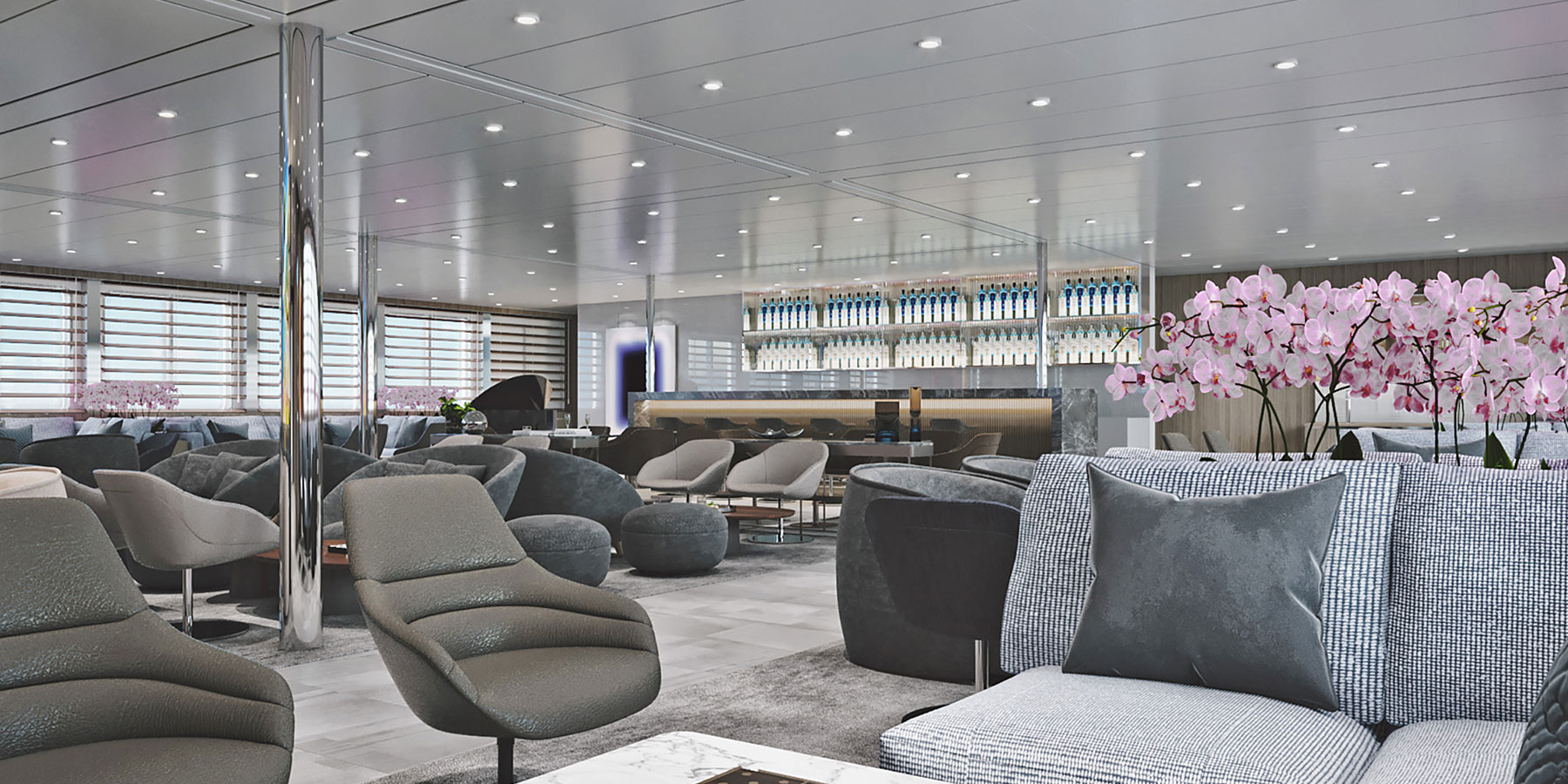 Doch kommen wir erst einmal zum Schiff, das eine sehr anspruchsvolle Klientel begeistert: Mit SkyBar auf dem Oberdeck, futurischem Design, mit einem edlen Stil in den Suiten und öffentlichen Bereichen. Und nicht zuletzt mit dem formvollendeten Service der sympathischen Crew.