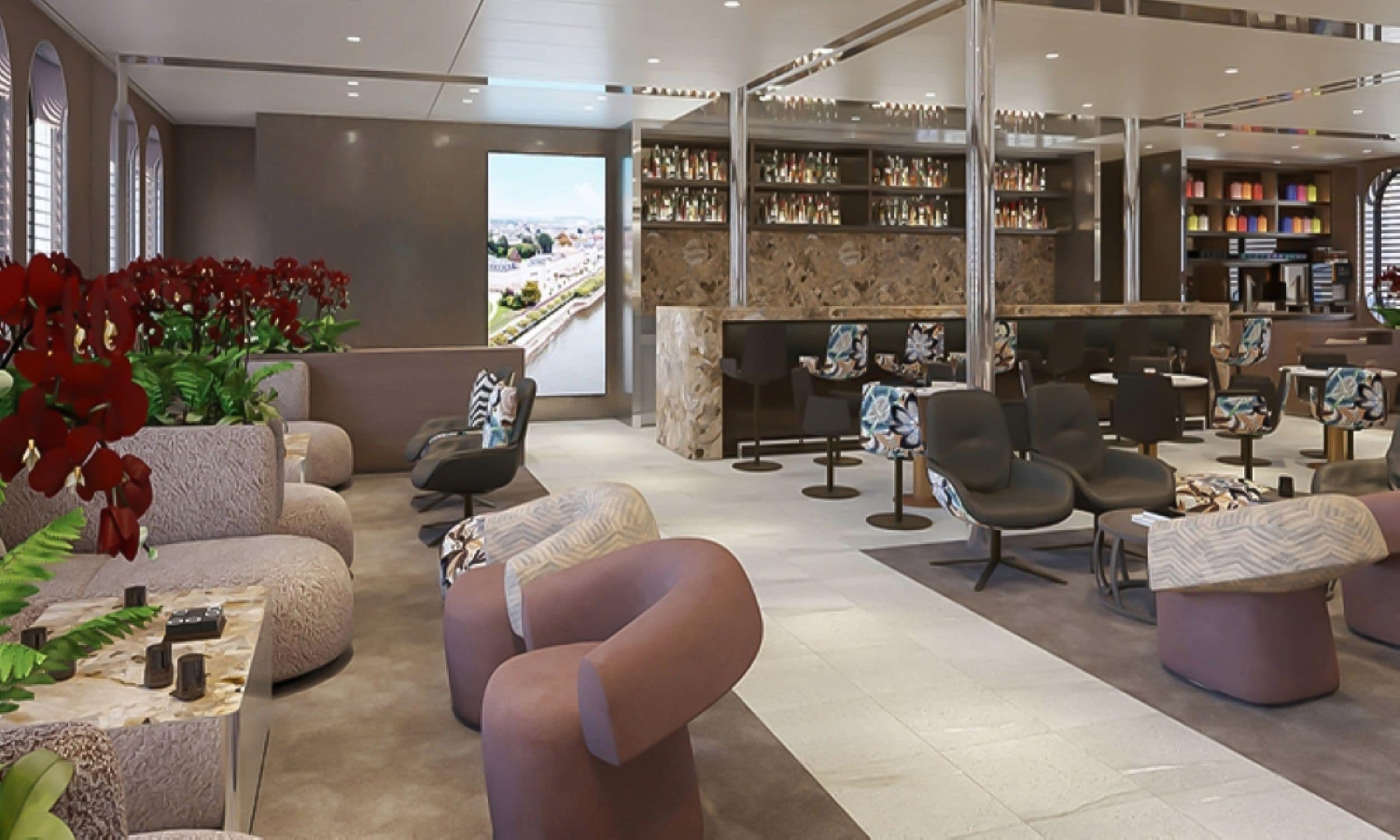 - Elegante Lounges mit großzügigen Panoramafenstern
