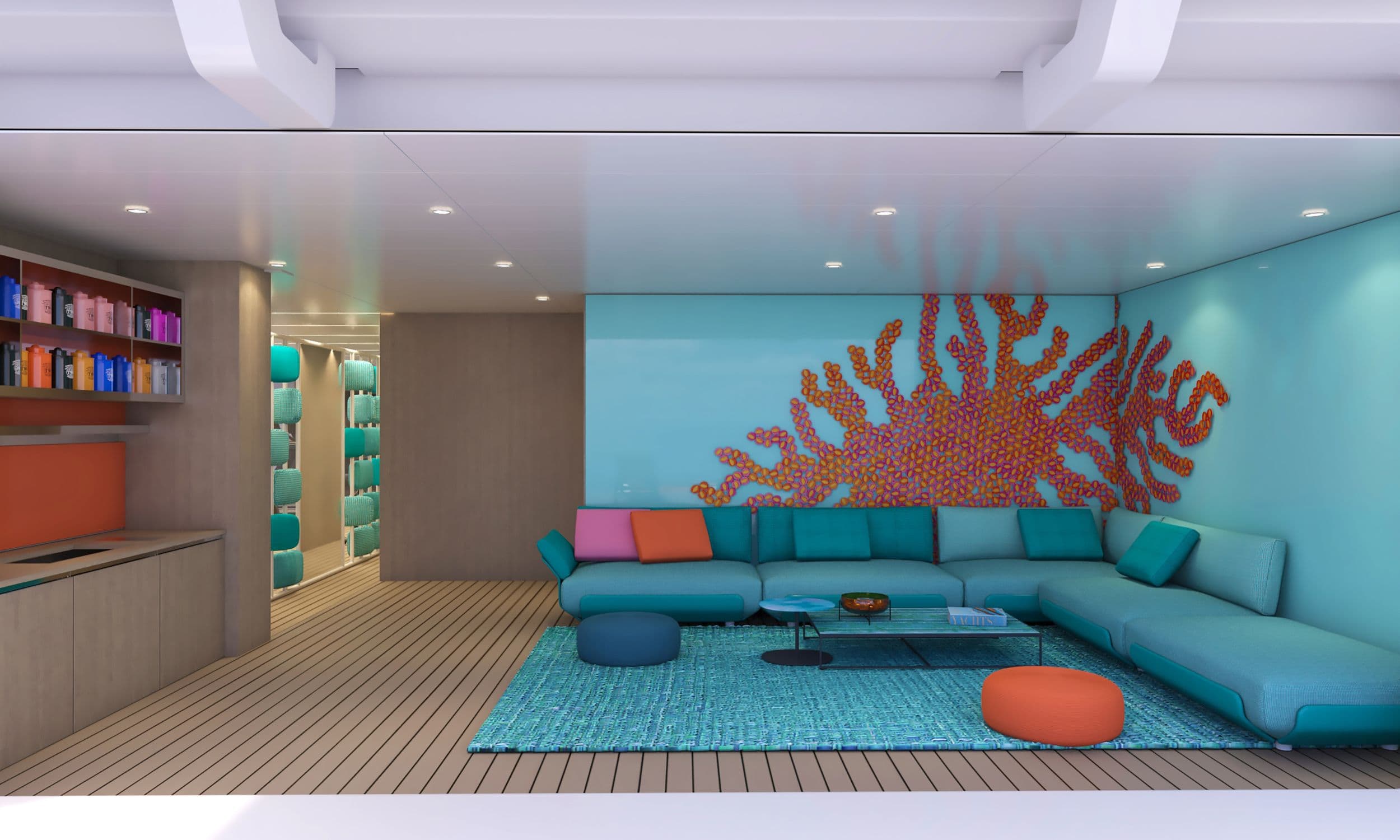 - Marina-Deck & Infinity-Pool – direkter Zugang zum Meer, Wassersport, Sundowner-Lounges und ein gläserner Pool am Heck: hier entstehen Legenden!