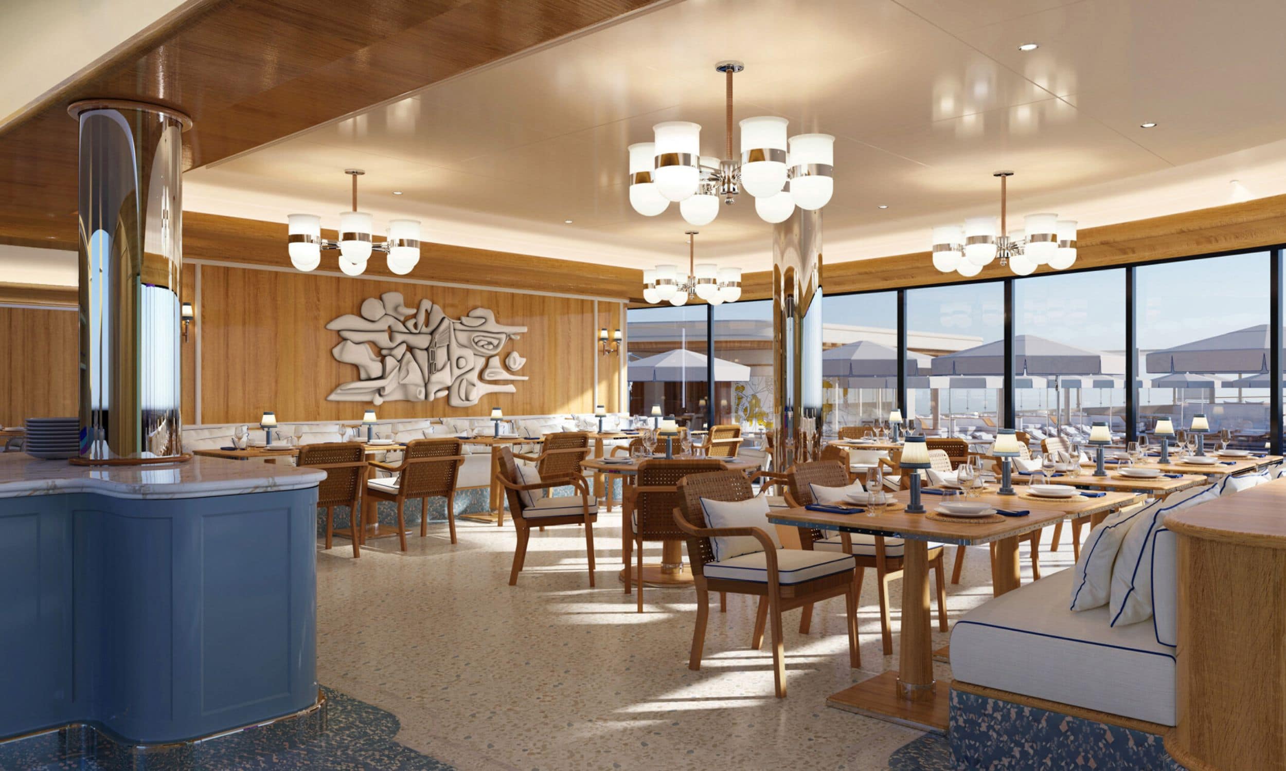 - Ein weitläufiges Sonnendeck mit Infinity-Pool und Relax-Zonen unter freiem Himmel.
