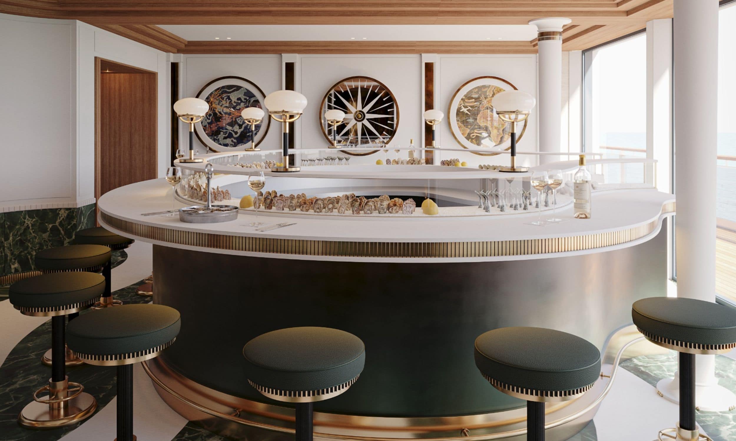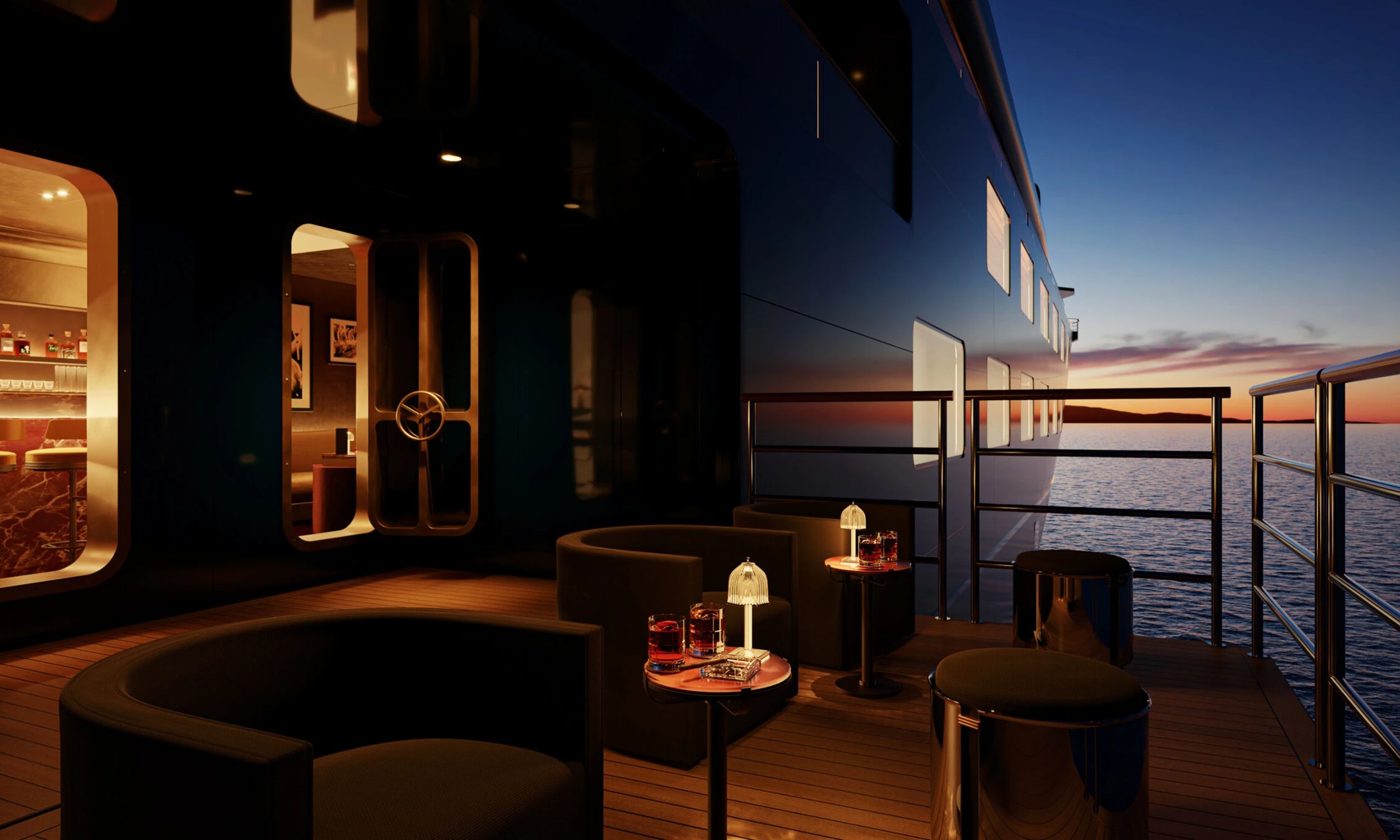 Der Konzeptphase ist die Kreuzfahrtyacht längst entwachsen: Die Corinthian steht in der Werft wie ein 220 Meter langes Grand Hotel, das auf seine ersten Gäste wartet. Die Rumpfsektionen sind geschlossen, die Masten montiert, der Innenausbau weit fortgeschritten. Handwerker verlegen Carrara-Marmor, setzen edle Holzpaneele, montieren Art-déco-Lampen – detailverliebte Elemente, inspiriert vom Kulturerbe des legendären Zuges aus dem 19. Jahrhundert.