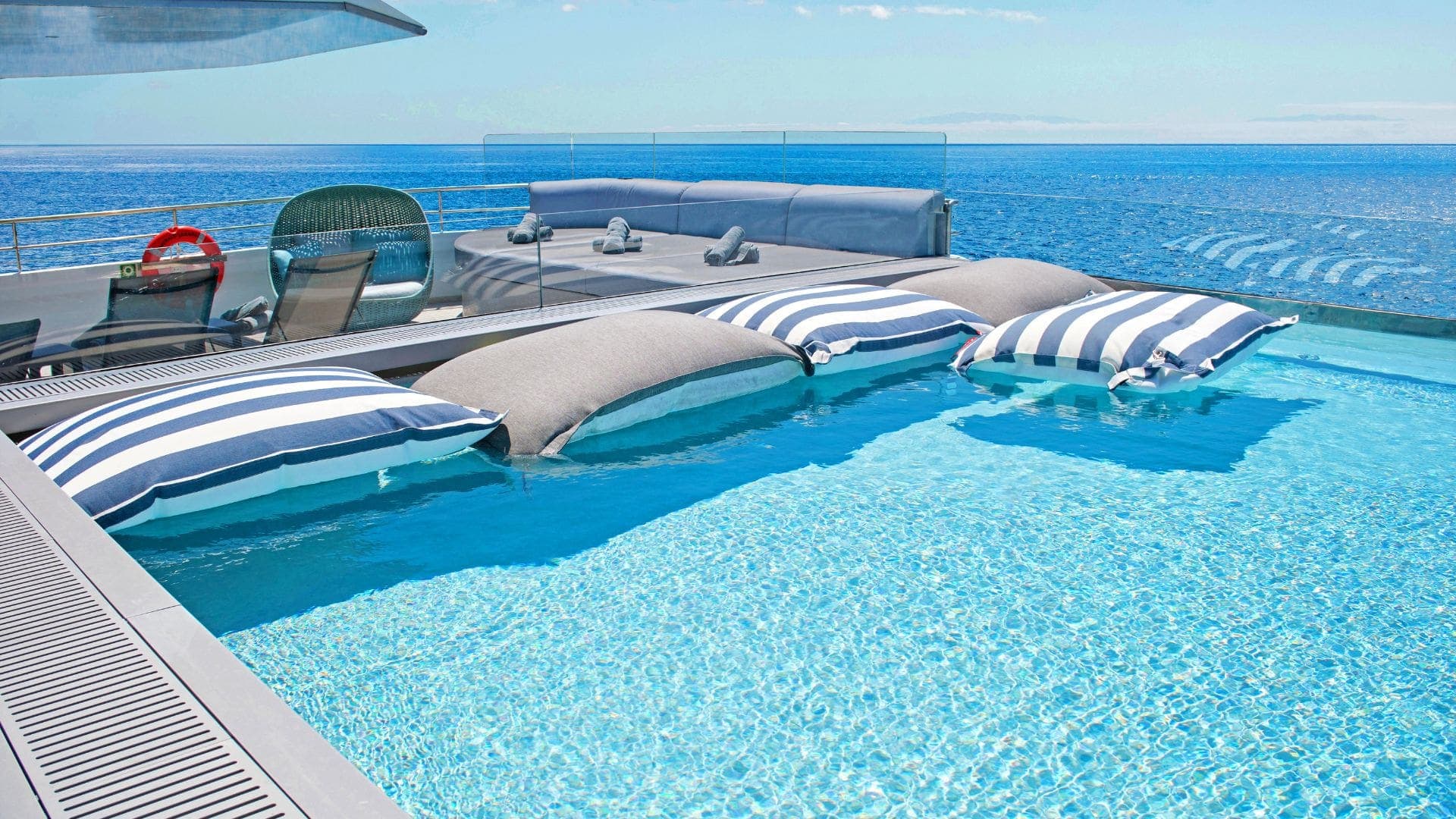 Tagsüber locken das Pool Deck und die Marina-Plattform, von der aus Sie und Ihre Gäste in ein Meer eintauchen, das nur Ihnen zu gehören scheint. Water Toys begleiten den Badespaß und auch der Service der sehr sympathischen Crew wird Sie begeistern.