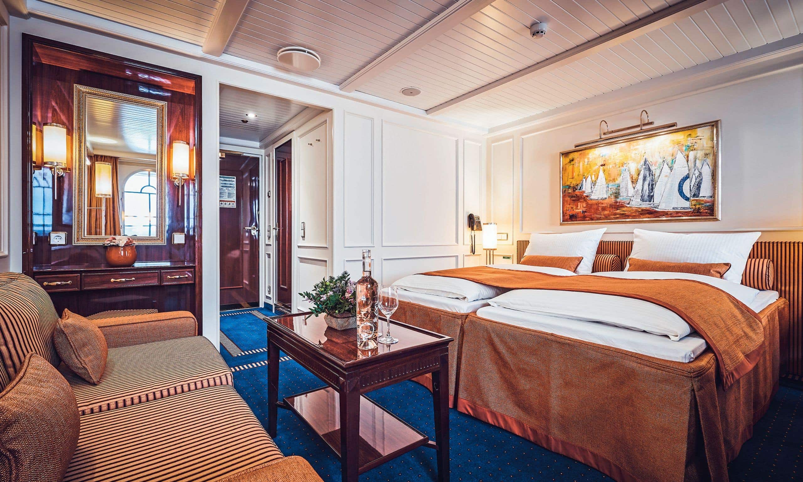 - 16 Kabinen & Suiten in warmen, edlen Farben, die Ruhe, Entspannung und Besinnung fördern