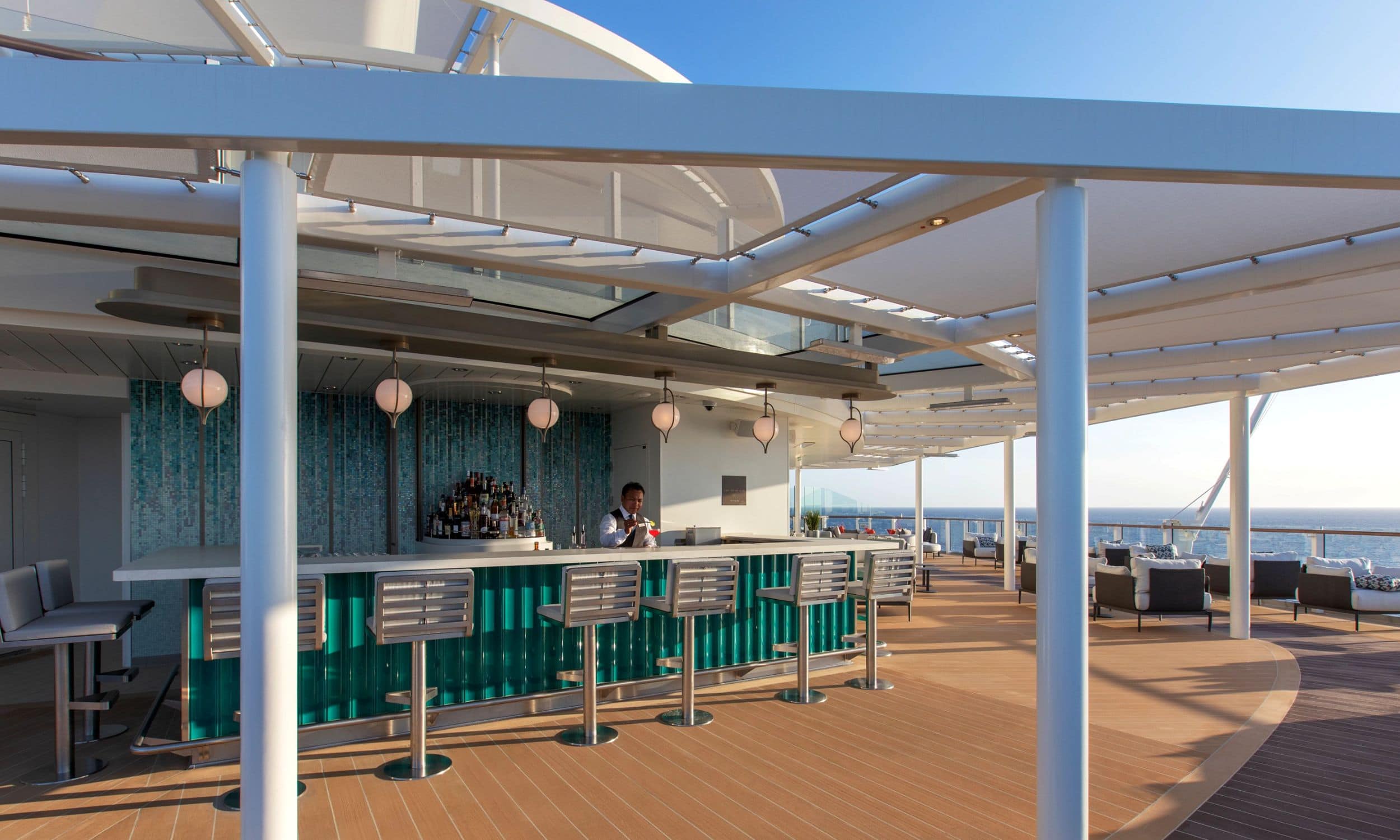 - Ocean views and private balconies in all suites – many with stunning 270° views